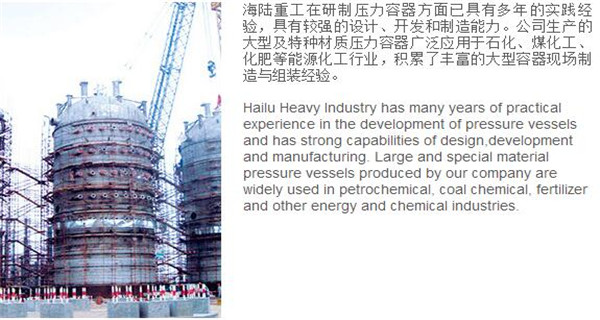 蘇州海陸重工股份有限公司位于江蘇省張家港市開發(fā)區(qū),是國內(nèi)一流的節(jié)能環(huán)保設備的專業(yè)設計制造企業(yè),目前并已初步形成鍋爐產(chǎn)品、大型壓力容器、核電設備、低溫產(chǎn)品、環(huán)保工程共同發(fā)展的業(yè)務格局。公司創(chuàng)建于1956年,注冊資本51640萬元,占地面積近50萬平米。公司下設八個控股子公司,一個余熱鍋爐研究所,在瑞士、北京、武漢、南京、上海、杭州、廣州等地設立分支機構(gòu),擁有雄厚的研發(fā)實力。公司秉承“科技領(lǐng)航、業(yè)界先鋒”的發(fā)展理念,注重研究廢熱、余熱利用和環(huán)境保護相結(jié)合的新技術(shù)研發(fā),自主設計能力居同行前列;公司承擔過國家863計劃,江蘇省科技成果轉(zhuǎn)化專項資金,榮獲國家科技進步二等獎,產(chǎn)品擁有核心自主知識產(chǎn)權(quán)并取得專利50多項;公司推行國際先進的管理體系標準和認證,擁有 A級鍋爐制造許可證,A1、A2、A3級壓力容器設計和制造許可證,取得了民用核承壓設備制造資格許可證、美國機械工程師學會(ASME)“S”、“U”鋼印,通過了ISO9001質(zhì)量體系認證、健康體系認證和14000環(huán)境體系認證;公司設備先進,裝備精良,專業(yè)嚴謹?shù)闹圃炖砟畲蛟斐銎焚|(zhì)非凡、質(zhì)量一流的“海陸”品牌聲譽。